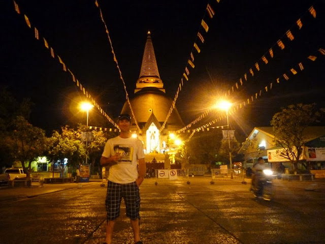 I much prefer to take the train over flying as you get to see so much more of the country and mix with the locals. A stopover at Nakhom Pathom for a switch of trains leaves us about half an hour to kill and we get some snaps of a different interesting temple thing? We get into Hua Hin about 11pm and take the first room we can find, train fare 183 baht ($6) all up for me and once again free for Mon.